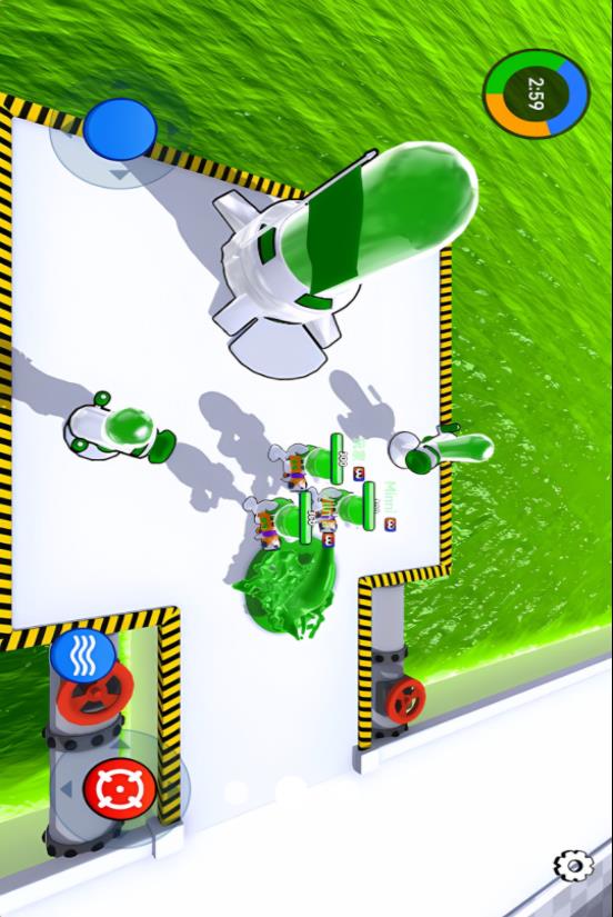 1、进入游戏后,你可以利用虚拟摇杆操控着战士移动,然后将敌人的炮塔也染成自己的颜色。