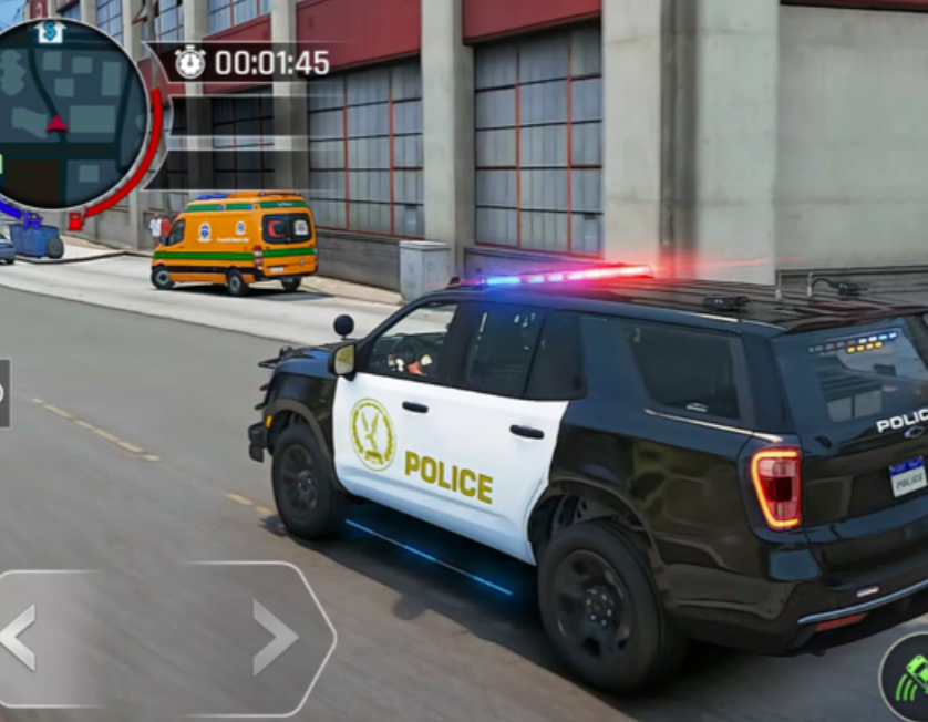 2、 每项任务需制定策略——选择轻型警车灵活追击或重型SUV强行拦截,动态难度适配不同玩家水平。