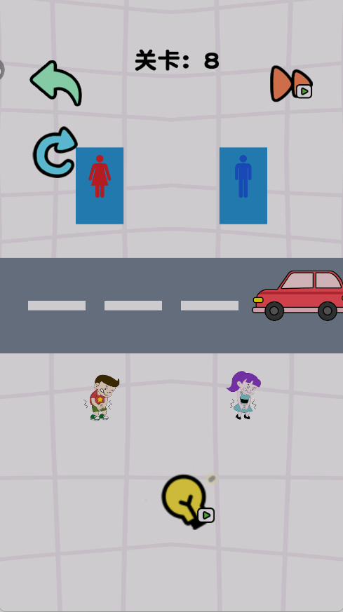 1、玩家化身画线侠,为被红绳、黑绳困住的尿急男女画出路线,助他们冲向专属厕所。