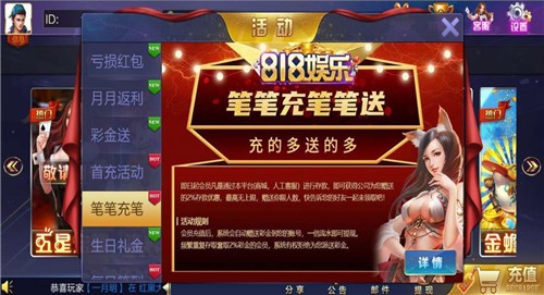 每日比赛奖励、充值奖励、满局奖励等,奖励丰厚,活动多多!