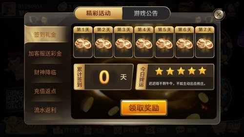 4、游戏里每天都有免费的救济基金,各种流行的棋牌游戏都可以玩,没有电脑人系统自动匹配真人,受到众多用户的喜爱。